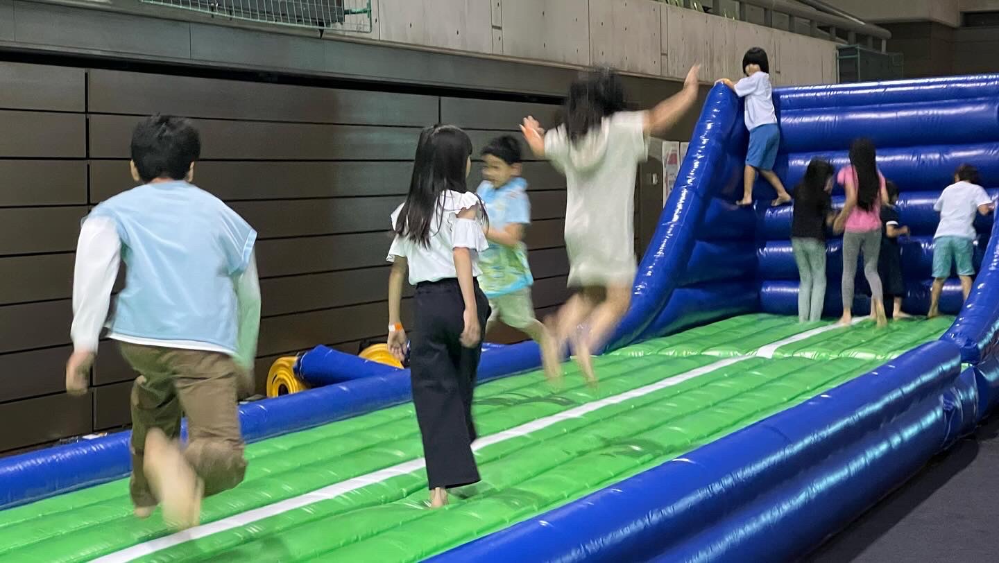 モーキャプスタジオ55からエアートランポリンやエアー遊具も出動し、沢山のお客様が楽しく身体を動かし、大いに盛り上がりました。