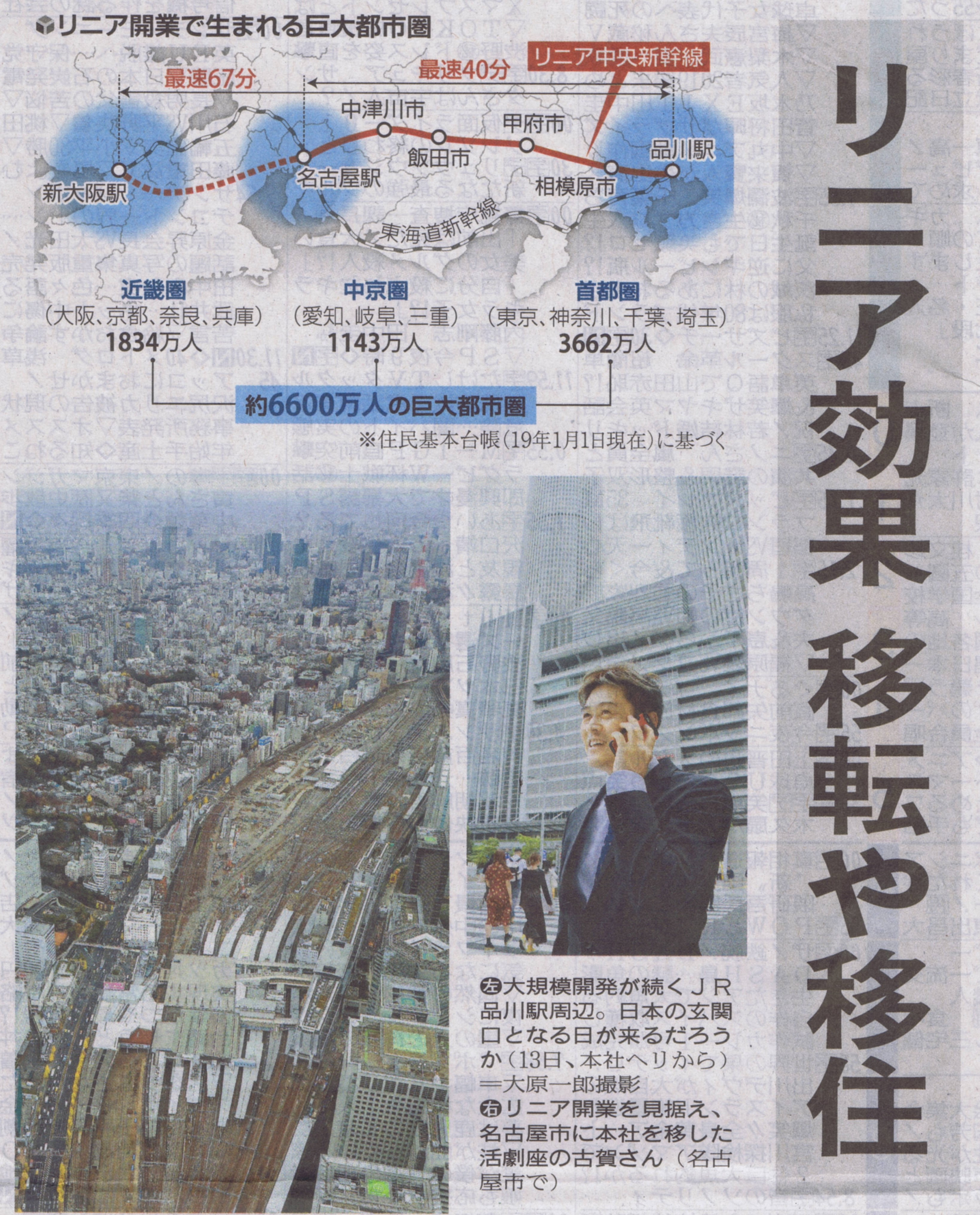 代表:古賀亘が『リニアの開業を見据え、名古屋に本社を移した』という記事で、 2019年12月15日(日)読売新聞の朝刊(全国紙)に載せて頂きました。