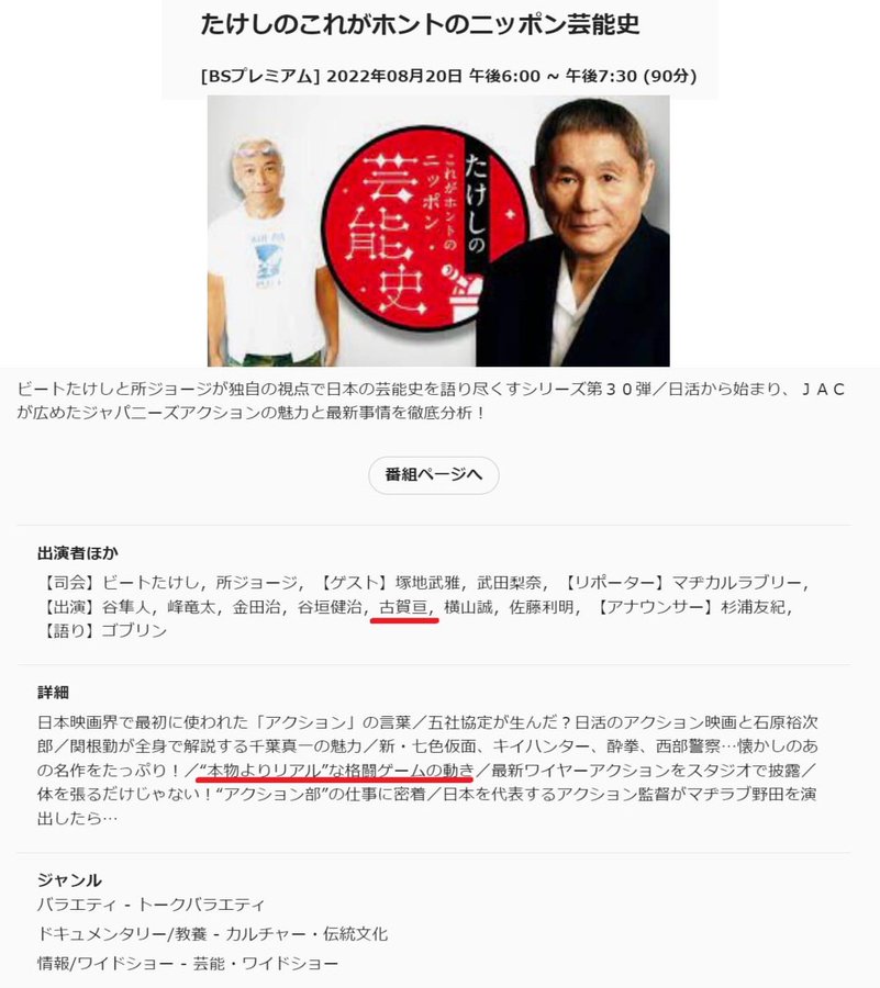 アクションを1950年代から歴史的に追っかけた番組です!
