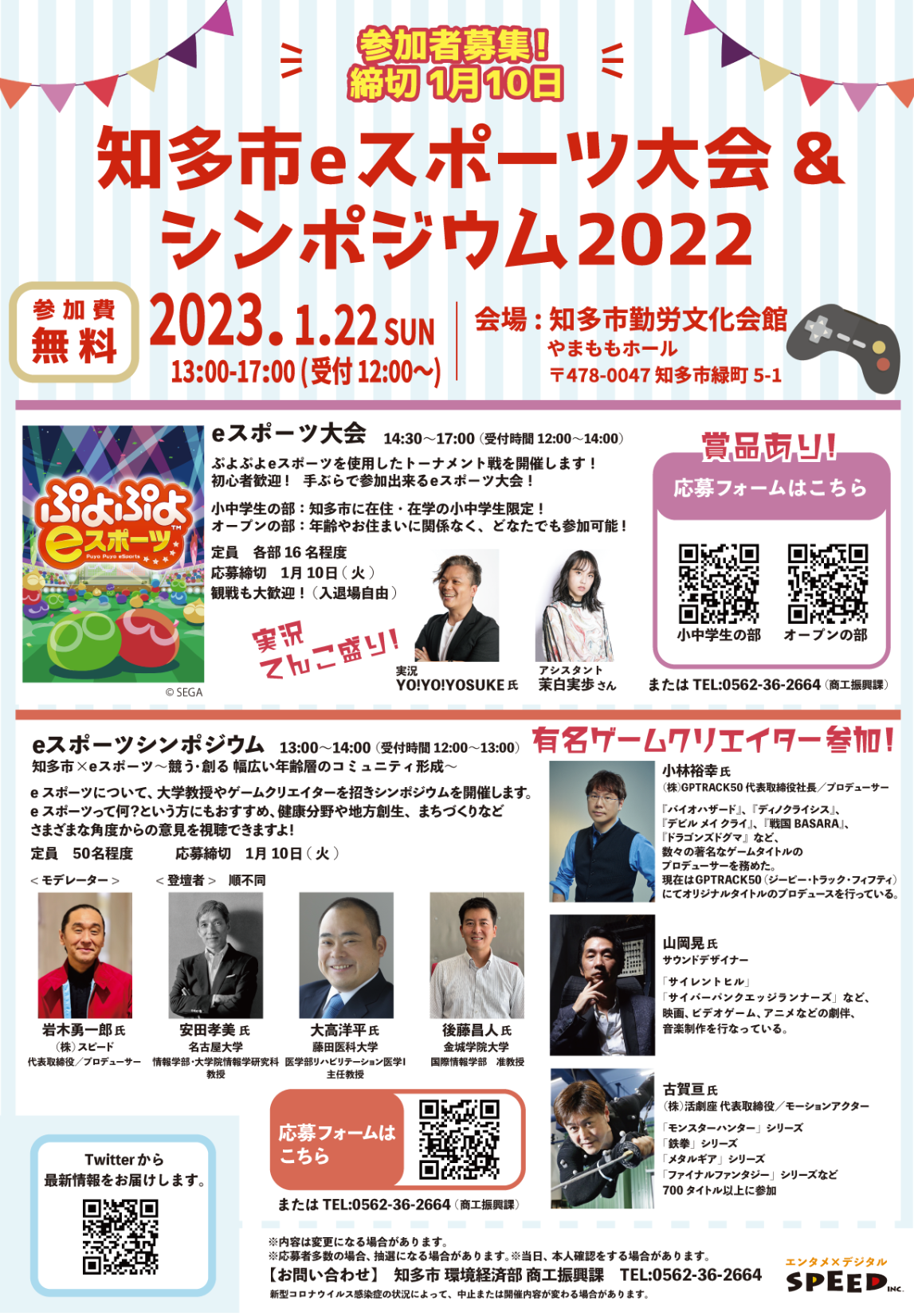愛知県知多市eスポーツ大会&シンポジウムに 代表:古賀亘が登壇させて頂き 豪華ゲスト陣とトークしました。 関連サイト↓ ↓ ↓ https://speedinc-jp.com/works/chita_e-sport.html