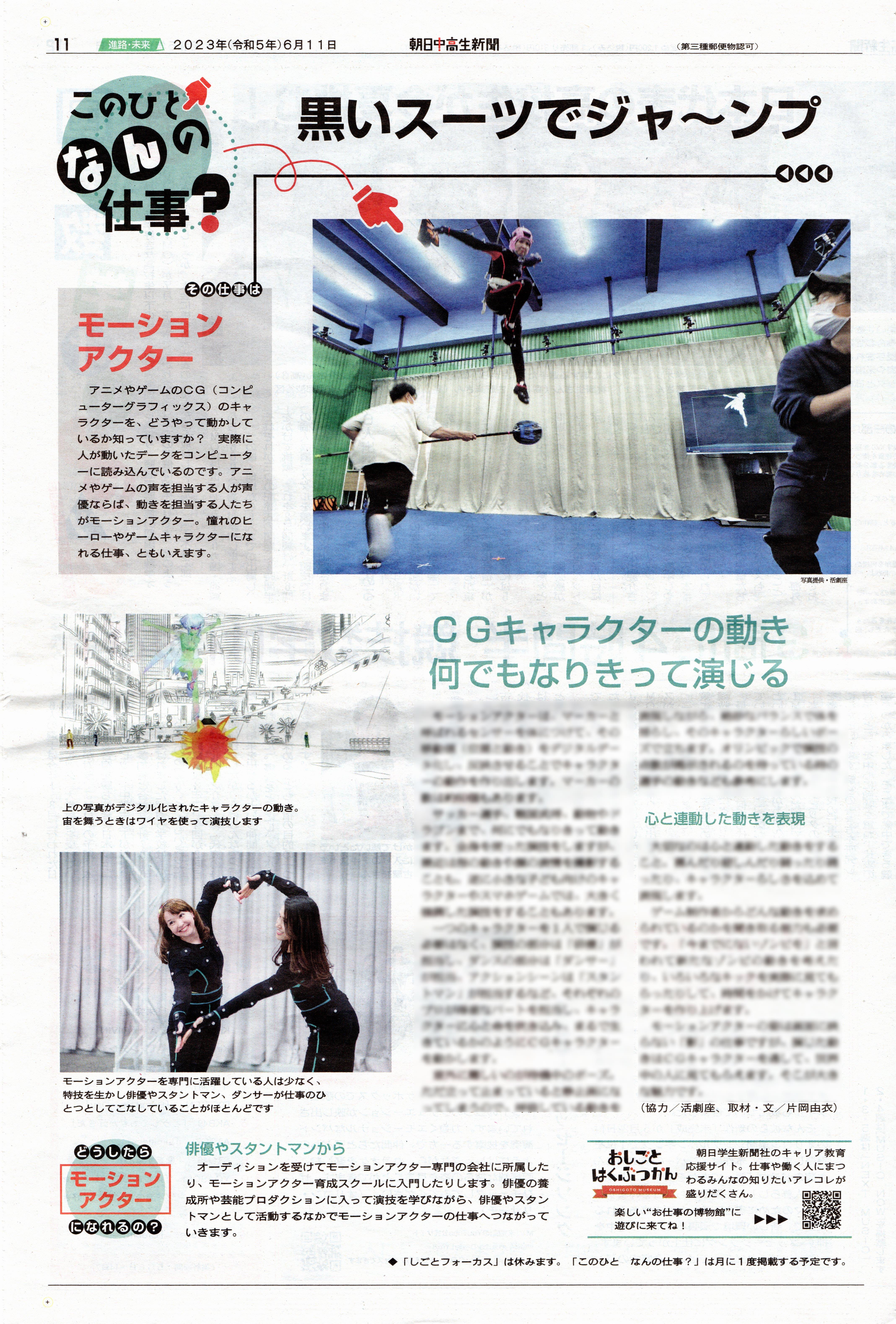 朝日中高生新聞「このひとなんの仕事?」のコーナーに大きく載せて頂きました。