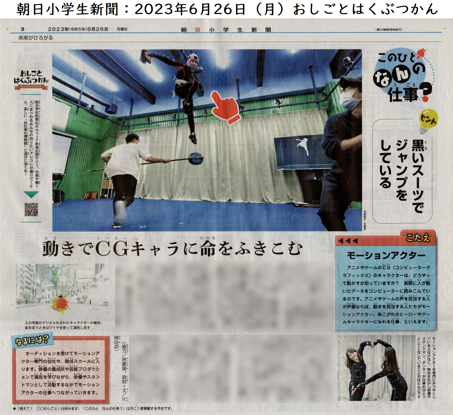 今度は、朝日小学生新聞「このひとなんの仕事?」のコーナーに大きく載せて頂きました。