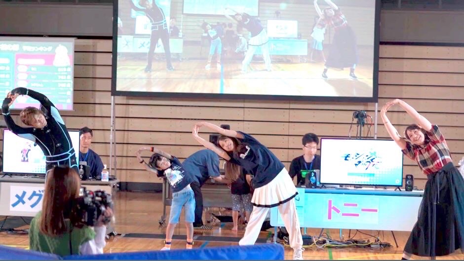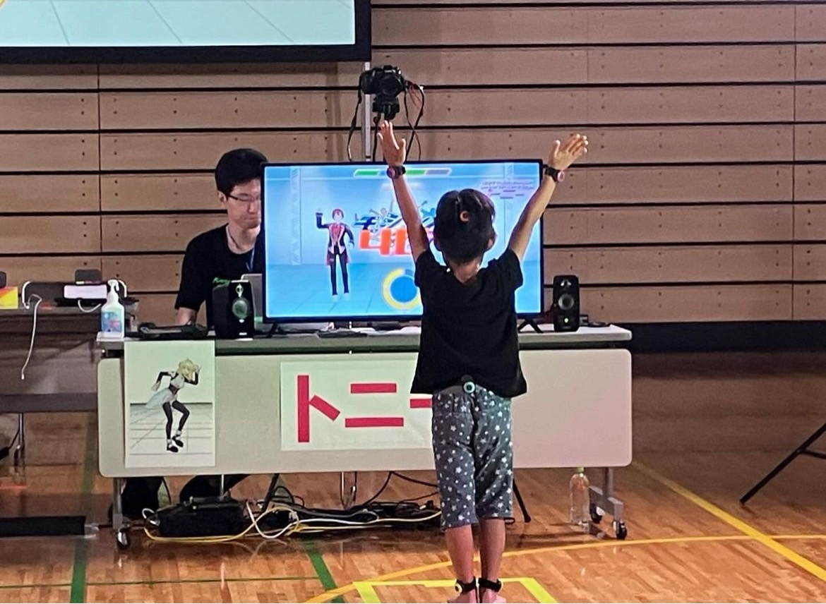 (株)スピードさんと活劇座で開発した、コントローラーを持たず実際に自分の身体を使ってキャラクターを動かし、モーキャプアクターの動きを真似てポイントを獲得するゲーム